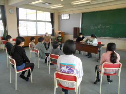 「図書室わくわくスタンプラリー」で、読み聞かせ券をもらった人たちへの読み聞かせがありました。