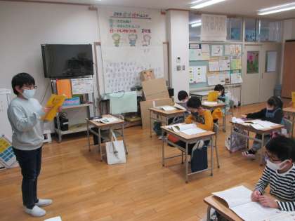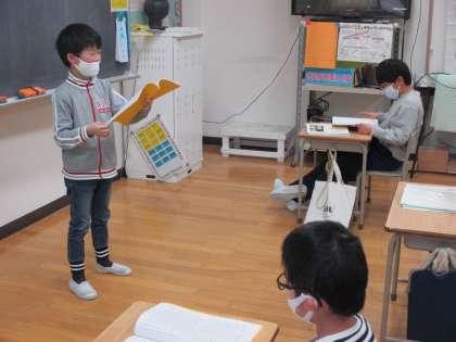 国語科「楽しかったよ 2年生」 公開日 2022/03/23 更新日 2022/03/23 2年 国語科最後の学習を行いました。「楽しかったよ 2年生」の学習として、今年度のひまわり文集の発表を行いました。この1年間のがんばりや心に残った思いについて一人ずつ発表し、その発表について感想を伝え合いました。「すごく丁寧な言葉をつかっていたね」「声がはっきりとしていて聞き取りやすかったよ」などと温かな声かけがありました。