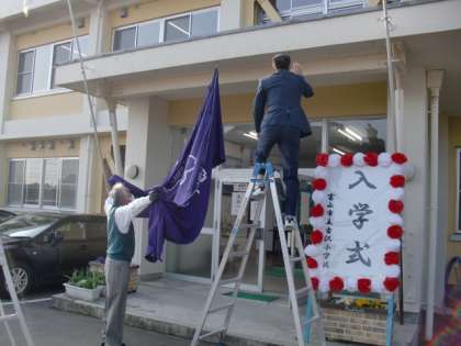 今日は入学式です。よい天候に恵まれ、8名の新1年生を迎える準備を朝早くから教職員が行いました。