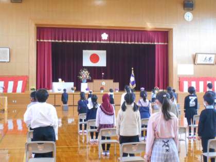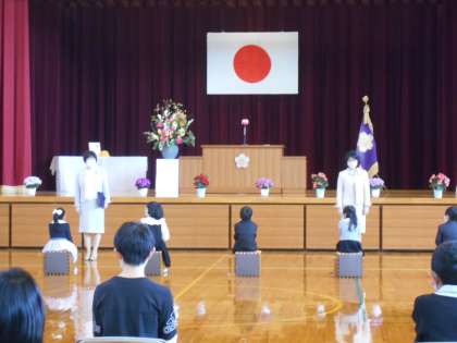 1年生は、元気に返事をしたり、しっかり話を聞いたりと、立派に式に参加することができました。