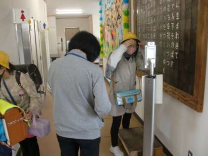 学校では登校後、一人一人が体温チェックを続けています。各家庭でも体温測定を引き続きお願いします。