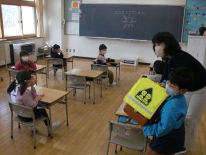 1年生教室では、少し緊張気味の子供たちですが、これからどんな学習が始まるのか、わくわくしているようです。