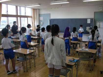3・4年生は日直が前に出て、元気よく全員で挨拶することから一日がスタートしました!