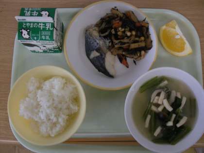 今が旬の鰆は、昔から日本人に愛されてきた魚です。身が柔らかく、骨も少ないことから、魚が苦手な人でも、鰆なら食べられるという人が多いそうです。また、体長が40センチから1メートルに成長する大型の魚で、成長とともに名前が変わる出世魚として知られています。さらに、春を告げる祝い魚として、日本古来から重宝されてきた魚です。今日は塩焼きとしてメニューに出ていますが、良いこと尽くめの鰆に感謝して、味わっていただきましょう。