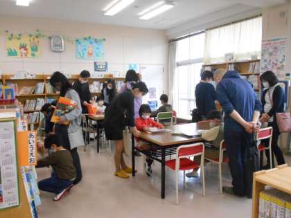 1年生は授業の後半に、保護者の方と一緒に図書室で本を借りたり、読んだりしました。楽しい本の世界を共に楽しむ姿が見られました。