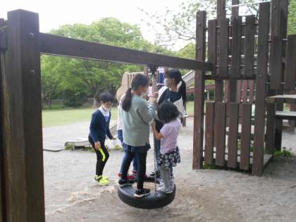 ファミリーごとに遊具で遊んだり、動物を見たりしながら、活動を楽しみました。
