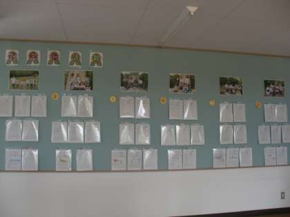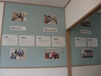 廊下の壁面には、ファミリー班活動の足跡や委員会活動のお知らせが、きれいに掲示されています。学年の垣根を越えた全校活動やファミリー活動は、古沢っ子が学ぶ喜びを実感できる大切な活動です。