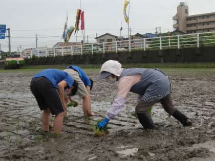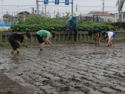 5月16日(月) 5・6年「田植え体験」 その2 公開日 2022/05/16 更新日 2022/05/16 6年 子供たちは、ぬかるんだ土に足を取られながら、普段味わえない感触を楽しんでいます。地域の方々が作業の仕方を丁寧に教えてくださいました。 さあ、いよいよ苗を植えます。1本1本の苗を優しく丁寧に植えていきます。