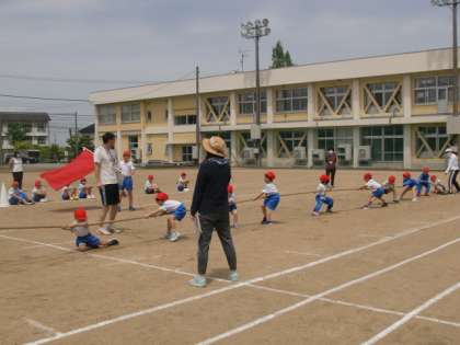 5月16日(月) 全校綱引き練習 公開日 2022/05/16 更新日 2022/05/16 学校概要 運動会が今週土曜日に迫っています。どの学年も団体競技、巧緻走等に一生懸命取り組んでいます。幸い雨は降らず、気温も高くないので、気持ちよく練習ができます。 今日は、全校で「綱引き」の練習をしています。1回目は1・2・3年生が対戦します。各団、前後の距離をとって10名程の対戦ですが、子供たちの気合いは十分です!