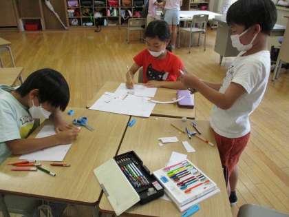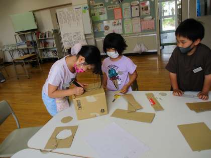 係活動を進めています。1学期は2つの係を子供たちで分担し、紙芝居を作ってみんなを楽しませる係と、段ボールで抽選器を作って、いろいろな当たり外れを楽しむ係が動き出しています。もっと楽しいクラスにしようと互いに協力したり、アイディアを出し合ったりしながら、意欲的に活動に取り組んでいます。