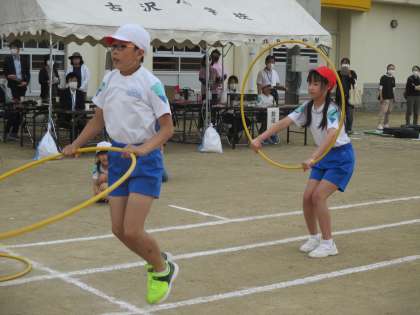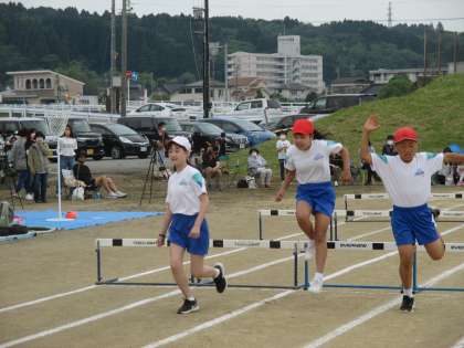 5月21日(土) 運動会 その3 3〜6年生「狙って入れろ!」 公開日 2022/05/24 更新日 2022/05/24 最新の出来事 3〜6年生の巧緻走は、ハードルやフラフープを跳んだ後に、いろいろなものを狙って入れる競技でした。うまく狙って入れることができたかな?