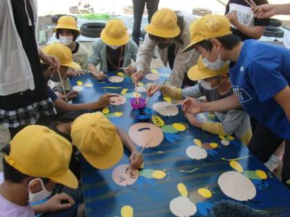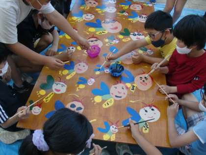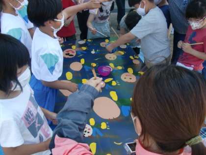 学年ごとに分担して描いています。交通安全への願いを込めながら・・・