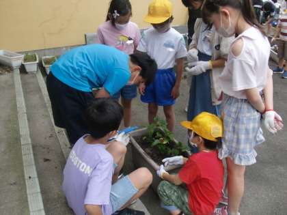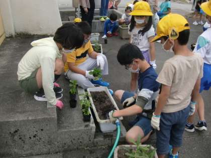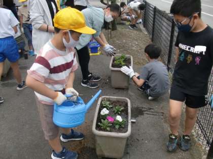 5月26日(木) 花の苗植え 公開日 2022/05/26 更新日 2022/05/26 学校概要 ファミリーの仲間と花の苗をプランターに植えています。花の種類や色等の配置を工夫しながら、ファミリーごとに協力して進めています。どのプランターも元気な花を咲かせたいですね。