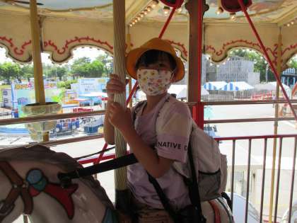 昼食後もよい天候に恵まれ、事前に仲間と相談して決めていた乗り物に、気持ちのよい海風を感じながら乗ることができました。子供たちは、「次は○○に乗りたいな。」「とても楽しかったよ!」など、充実した一日を振り返っていました。