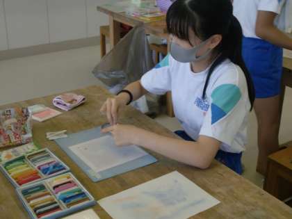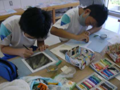 6月2日(木) 5・6年 パステル画教室 公開日 2022/06/02 更新日 2022/06/02 5年 5・6年生は、4限目に行いました。講師の先生から「みんな、大きくなったね!」と声をかけられ、ちょっと照れくさそうでしたね。毎年、古沢っ子のために来てくださる講師の先生に感謝しながら、6年生は「今年で最後だから、最高の作品を作ろう」と張り切っていました。心の中のイメージをパステル画で表現することができたかな。