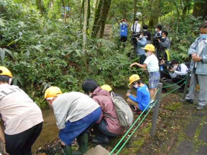 3・4年生がファミリーパークでカワニナの放流を行いました。カワニナがホタルの餌であることを学習していた子供たちは、“古沢にホタルがたくさん来てくれるといいな”と思いながら活動に取り組みました。