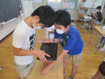 6月29日(水) 5・6年 図画工作科 公開日 2022/06/29 更新日 2022/06/29 5年 5・6年生は、図画工作科「形が動く 絵が動く」の学習に取り組んでいます。自分で選んだものを少しずつ動かしたり、ものの形を変えたりしながら、クロームブックで撮った写真を連続して動かし、アニメーションに似た作品を作っています。子供たちは、友達と協力しながら試行錯誤を重ね、楽しい作品にしようと意欲的に活動しています。