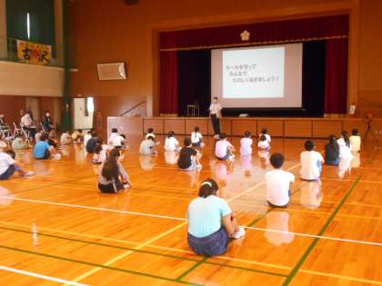 7月22日(金)、1学期の終業式を行いました。児童会の委員会活動を振り返りながら、「高め合い」「思いやり」「チャレンジ」それぞれの視点で達成できたことを確認しました。また、夏休みの生活やプールの利用について、担当の先生から諸注意がありました。夏休みは、安全で健康に過ごせることを願っています。