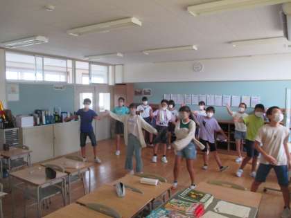 朝活動で漢字のプリント学習をした後、1学期のダンス教室で教わったダンスの練習に久しぶりに取り組んでいます。