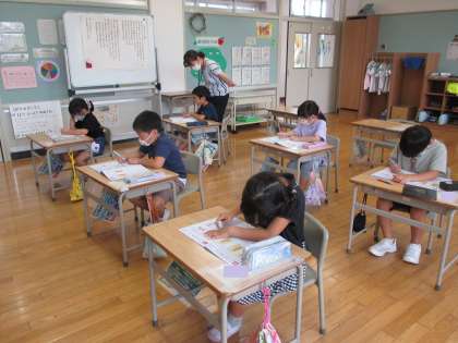 2学期がスタートして、10日が経ちました。算数科では、数の大きさを比べたり、ブロックの数を数えたりしながら、子供たちは、じっくりと問題に取り組んでいます。“頑張るぞ!”という空気が、教室いっぱいに広がっています。