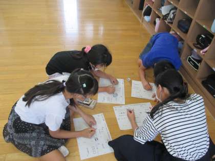 2学期初めてのクラブ活動は、みんなで謎解きゲームに挑戦しました。4・5・6年生でチームをつくり、暗号クイズを解き合いました。仲間と知恵を出し合い、協力しながら活動しました。子供たちは口々に「楽しかった!」「またやりたい!」など、次回の活動に期待を膨らませていました。次のクラブ活動も楽しみですね!