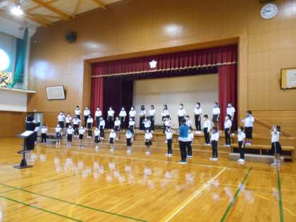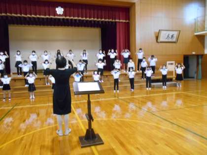 10月5日(水) 全校合唱教室 公開日 2022/10/05 更新日 2022/10/05 最新の出来事 今日は、外部講師の先生による合唱教室の3回目です。明後日7日(金)の音楽会に向けて、衣装を着けての練習に取り組みました。 講師の先生からは、一つ一つの言葉の意味をしっかり理解して大切に歌うこと、頭の上から声を出すように歌うこと等、今日も丁寧に具体的に教えていただきました。 音楽会まであと二日。一層練習に気合いが入る古沢っ子です。
