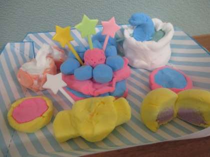 10月12日(水) 1年 図画工作科「ごちそうパーティーはじめよう」 公開日 2022/10/12 更新日 2022/10/12 最新の出来事 カラー粘土で自分の大好きな食べ物を作りました。ケーキにアイスクリーム、果物やお寿司まで、おいしそうなご馳走が次々とでき上がりました。粘土を丸めたり、伸ばしたりすると、いろいろな形になることや、色の違う粘土を混ぜると、様々な色ができることも発見しました。 次の時間は、みんなで「ごちそうパーティー」をします。楽しみですね!