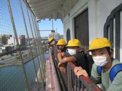 10月13日(木) 6年 校外学習 その1 公開日 2022/10/13 更新日 2022/10/13 6年 秋晴れの気持ちのよい天候の下、6年生が「富山市郷土博物館」「高志の国文学館」「富山県議会議事堂」の見学に行ってきました。 「富山市郷土博物館」では、社会科の学習で学んだ「織田信長」「豊臣秀吉」「徳川家康」の戦国武将の活躍とともに、富山城ができた歴史的背景や昔の石垣作りの方法等を学芸員の方から詳しく教わりながら、楽しく見学することができました。