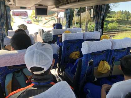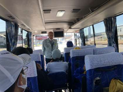 池多小学校の皆さんもバスに乗って来ました。地域の方から今日の説明を受け、期待が高まりました。
