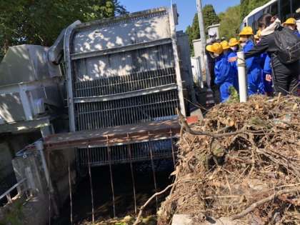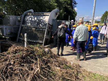 最後は、友坂分水工に来ました。最初の取水口から、2つのトンネルを通り、こちらの分水工まで約8キロメートルだそうです。また、除塵機も動かしていただき、流れてきた木の枝等を取り除くところも見せていただきました。