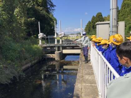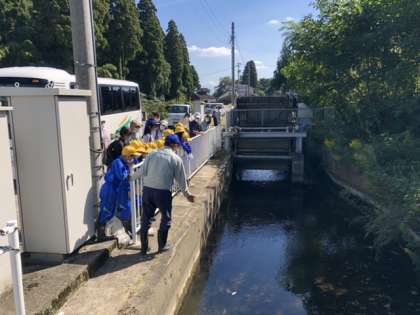 分水工は、右側が古沢地区へ、左側が池多地区へ流れていきます。