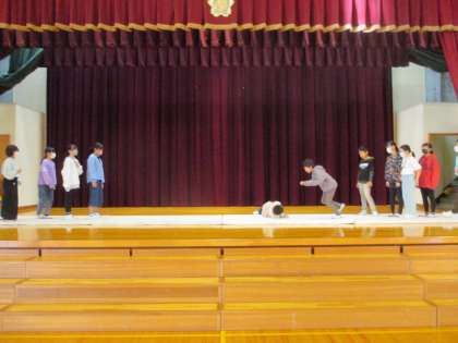 明日の学習発表会に向けて、みんなで最終チェックをしました。先日の校内発表会でアドバイスしていただいたことを一つずつ確認し、通し練習をしました。これまで何回も練習してきたので、みんなの自信もますます深まり、一つ一つの演技に磨きがかかってきました。