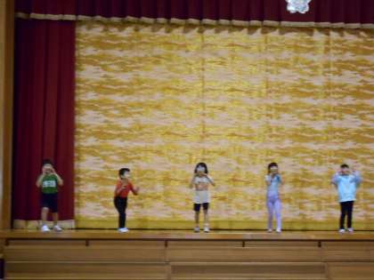 1年生は初めての学習発表会でした。どきどきしながらステージに上がった子供たちでしたが、みんな元気いっぱい、はじめの言葉を伝えることができました。「学習発表会、始まるよ!」会場いっぱいに子供たちの声が響き渡り、学習発表会の開演です。