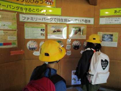 レッサーパンダチームも動物舎の掃除と餌やりをしました。動物たちが病気にかからないように、動物舎に入る前には、靴の消毒をします。飼育員さんが動物たちに話しかけると、嬉しそうに近付いてくるので、毎日、優しく大切に世話をしてあげると、動物たちが安心して仲良くなれることを知りました。