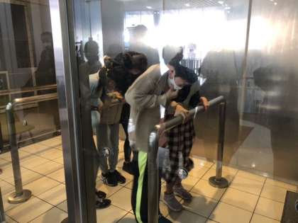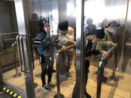 続いて、風雨災害体験をしました。風速が次第に強くなり、息ができなくなるほどの強風や台風等の体験をしました。次に来たときには、雨の体験をしてみたいですね。