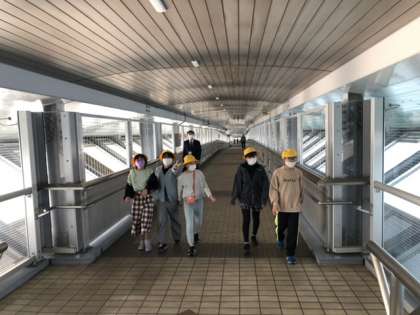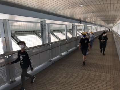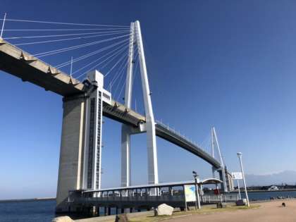 新湊大橋の「あいの風プロムナ−ド」を歩いています。約1キロメートルの橋の下を歩きます。