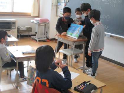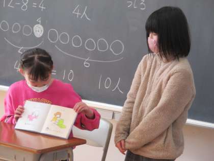 昨日3年生が、1年生に本の読み聞かせをしました。1年生にぴったりの本を3年生みんなで選び、1年生が楽しく聴いてくれるように、はっきりと心を込めて読みました。1年生に喜んでもらえて、笑顔いっぱいの3年生でした。