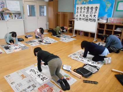 2学期末から冬休み中に一生懸命練習した成果を発揮して、静かな雰囲気の中、集中して取り組みました。