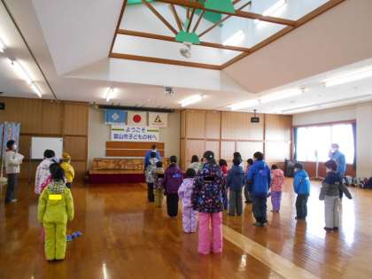 1月27日(金) 1・2・3年スノーフェスティバル その1 公開日 2023/01/27 更新日 2023/01/27 最新の出来事 待ちに待った、富山市子どもの村でのスノーフェスティバルの日です。始めに入所式を行いました。3年生がそれぞれの班のリーダーになって、下級生に優しく声をかけながら、みんなで仲良く活動することができました。