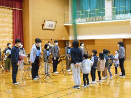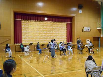 学習参観後、富山大学医科薬科管弦楽団をお招きして「ひまわりコンサート」を開催することができました。実に3年振りです。富山大学医学部と薬学部が私たちの地域にあるというご縁で、今回で21回目となります。アンコールでは校歌を演奏してくださり、皆で歌いました。管弦楽団さん、素敵な時間をありがとうございました。