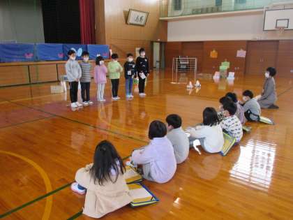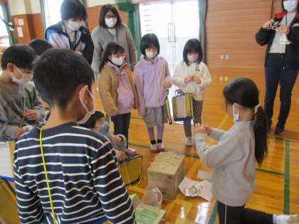 2月10日(金) 2年 生活科 おもちゃランド 公開日 2023/02/10 更新日 2023/02/10 2年 2月9日(木)に、体育館で「わくわくおもちゃランド」を開きました。2学期から少しずつ作ってきた手作りおもちゃで「仲良しの1年生にも遊んでほしい!」と期待を膨らませながら、これまでみんなで準備を進めてきました。 自分たちで進行を務めたり、それぞれのおもちゃコーナーで一生懸命説明したりしながら、とても楽しいおもちゃランドになりました。