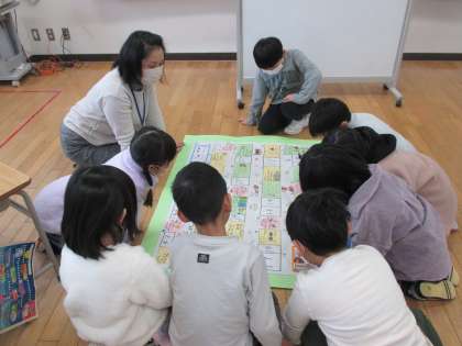 先日、校長先生と担任で古沢保育所の年長児の皆さんに、完成した双六をお届けしました。今日は、その双六で遊ぶ年長児の皆さんの様子を、校長先生が見に行ってくださいました。子供たちは、様子をお話しくださる校長先生のお話に、身を乗り出して聞いていました。ますます2年生になることが待ち遠しくなりましたね!