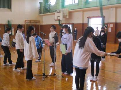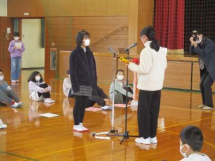 古沢小学校をよりよくするために取り組んできた委員会活動やファミリー班活動の引継式を行いました。6年生は、これまでの活動を振り返り、頑張ってきたことや下級生へのメッセージを伝えました。5年生が下級生を代表して6年生の思いを受け、みんなで更に楽しい古沢小学校をつくっていこうと決意を新たにしました。最後に、これまで代々受け継がれてきた「伝統のバトン」が6年生から5年生に手渡されました。