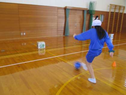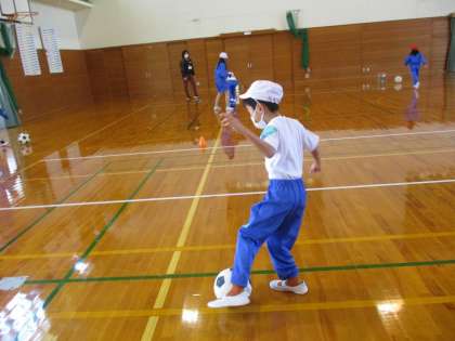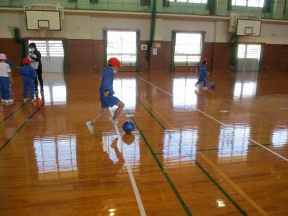 2月28日(火) 1・2年 体育 公開日 2023/02/28 更新日 2023/02/28 2年 体育科では、ボール蹴り遊びの運動「ゴーゴーシュート」の学習を行っています。ボールをゴールまで運んだり、的に当てたりして、楽しく体を動かしながら活動しています。ボールを蹴ったり止めたりすることが上手になってきた1・2年生です。