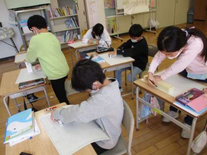 算数科では、「はこの形」の学習をしています。持ち寄った箱をなかま分けしたり、形を写し取ったりしました。箱には平らな面が6つあり、それぞれが長方形や正方形になっていること等、これまでの学びを生かしながら学習を進めています。