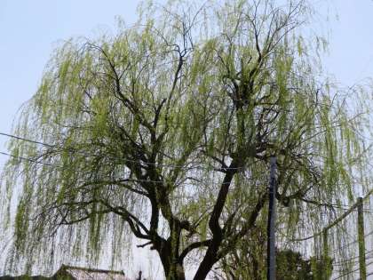 校庭の柳の木も、新しい葉をぐんぐん伸ばしています。春の色です。