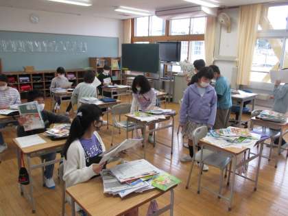 高学年は、自分たちで教科書やプリントを配ります。アトム級は、担任の先生とゲームを楽しみました。