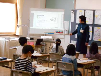 たくさんの大人が周りを取り囲んでも気をそらさず、どの子供たちも真剣に学習に取り組んでいました。