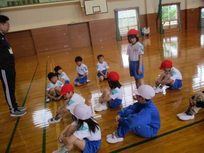体育では、1・2年生一緒に活動をしています。今日は、体をたくさん使っていくつかのミニゲームをしました。楽しく活動しながら、体力作りをしています。