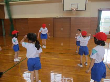 4月26日(水)1・2年 体育 公開日 2023/04/26 更新日 2023/04/26 2年 体育では、1・2年生一緒に活動をしています。今日は、体をたくさん使っていくつかのミニゲームをしました。楽しく活動しながら、体力作りをしています。